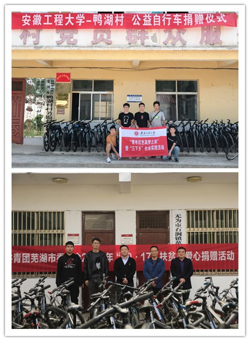 学院“含笑花”志愿服务团队以探索校园单车管理发展新方向为己任,自2019年4月成立以来,用一年半的时间全面清理了学校内长期堆积的废旧自行车,对于其中仍有使用价值的,队员们运用自身学科专业知识技能进行维修翻新后再捐赠给贫困地区,截止目前已累计向宿州市埇桥区鸭湖村、无为市石涧镇范庄村等地累计捐赠公益自行车210辆。对于其中完全报废的,队员们将其作为废品出售,获得的28810元作为扶贫爱心捐款也在今年扶贫日汇入学校财务账户。团队先后获批芜湖市青年志愿服务示范项目,荣获第九届安徽省“挑战杯”大学生创业计划竞赛银奖等奖项,事迹先后被“学习强国”、“中国青年报”、“安徽日报”等国内知名媒体转载报道。