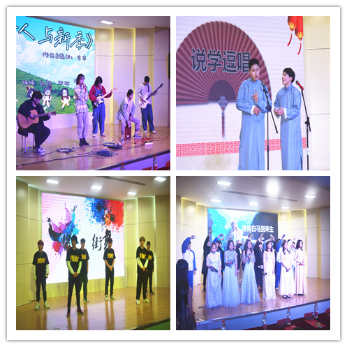 在精彩的开场乐曲表演后,王勇智书记上台为晚会致辞,他深情满怀地回顾了我院成立以来师生取得的成绩和进步,为大家送上了新的一年诚挚的问候与亲切的祝福,并祝愿晚会圆满成功。随后,舞台交给了各位充满青春活力的演出人员。几位歌手带来的深情演唱可谓是一场视听盛宴。开场音乐《诗人与新季》展现出了诗和远方,中间的《爱一点》和《不染》更是将观众完全的带入进乐曲之中,台下气氛活跃,反响热烈。相声和小品表演更是给晚会现场带来了阵阵欢声笑语。相声《侠客行不行》和小品《上学那些事》、《青春毕业日》以诙谐幽默的方式让观众们感受到童真的求学时代的美好,现场观众的笑声更是一浪高过一浪。街舞《Feel popping》和Rap《爱你3000》中,演员们高超的表演技巧让观众目不转睛,台下时不时地爆发出阵阵掌声。晚会中场时也有一段小插曲,由主持人在材料院每个班级中随机抽取一位辛运观众送出福利,最终有五位同学获得了奖品。晚会的压轴表演是合唱《身骑白马到来生》,歌手们歌喉柔美、声线多变,歌曲意境悠长,节奏时而激荡,时而舒缓,给台下的观众们带来了极致的听觉体验。伴随着音乐的结束,所有参与晚会的演出人员向台下的观众致谢,老师们也被邀请上台与其合影纪念,晚会顺利落下帷幕。
