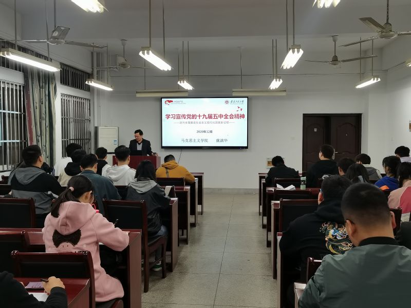 4月9日,材料学院分党校邀请马克思主义学院虞满华教授为我院第一期预备党员培训班学员作题为《学习宣传党的十九届五中全会精神——迈向全面建设社会主义现代化国家新征程》的专题讲座。