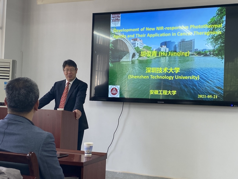 5月21日上午,应材料科学与工程学院、科技处和研究生部的邀请,深圳技术大学健康与环境工程学院院长胡俊青教授来我校做学术报告。报告会在材料学院B203学术会议室举行,学院书记王勇智、学院副院长刘琪及相关专业教师和研究生参加了会议,报告会由刘琪主持。