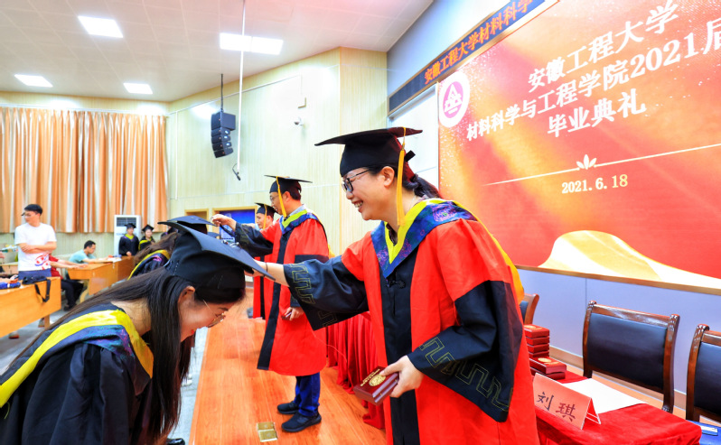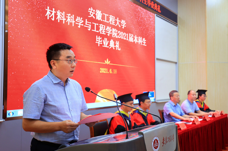 6月18日下午,材料科学与工程学院2021届本科生毕业典礼在2教报告厅隆重举行。校党委常委、副校长郑健出席典礼,学院党政领导班子成员、教师党支部书记、系部主任、教师代表、毕业班辅导员和160余名毕业生参加典礼。典礼由院党委副书记方玖胜主持。