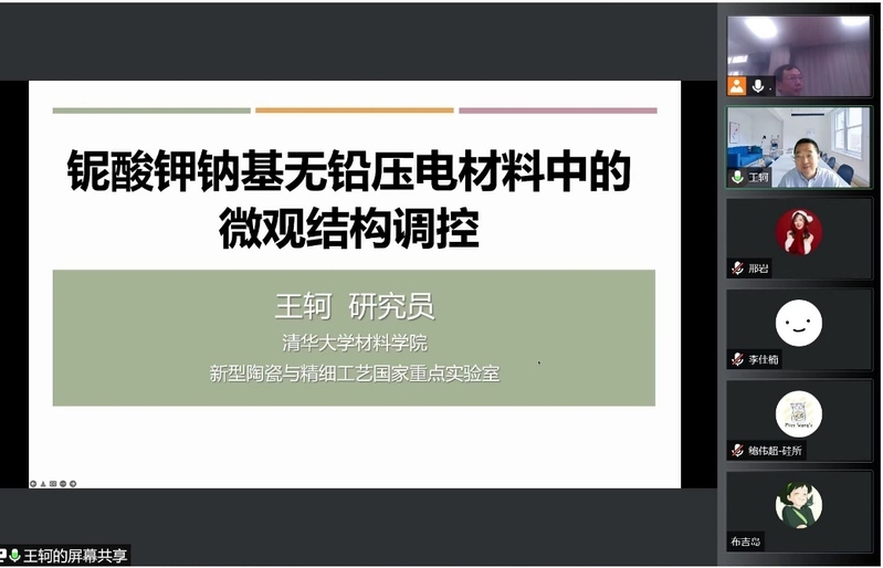 报告会上,王珂研究员作题为《铌酸钾钠基无铅压电材料中的微观结构调控》的学术报告。本场学术报告由中国硅酸盐学会特种陶瓷分会与我院共同举办,报告会由左如忠和北京科技大学白洋教授共同主持。王珂介绍了铌酸钾钠无铅压电陶瓷的发展现状,并成功运用缺陷调控机理有效提升了铌酸钾钠陶瓷的电致应变,实现了机械品质因数与压电常数的协同优化,为水声声呐系统、医疗超声骨刀等大功率应用奠定技术基础。