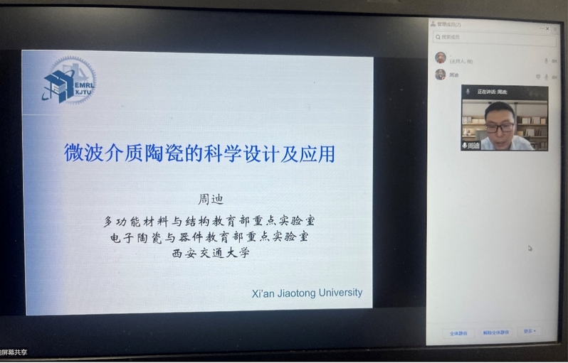 报告会上,周迪教授作题为《微波介质陶瓷的科学设计及应用》的学术报告。从微波/毫米波介质陶瓷的三大性能参数:介电常数、品质因数及谐振频率温度系数起源入手,结合Shannon加和理论、C-M方程、光频麦克斯韦方程及一维谐振模型,围绕材料的结构-组分-性能关系,展开了深入浅出的讲解,介绍高品质因数微波介质陶瓷、(超)低温共烧陶瓷技术领域近年来的一些新颖成果,在5G/6G通讯领域具有巨大的潜在应用价值。