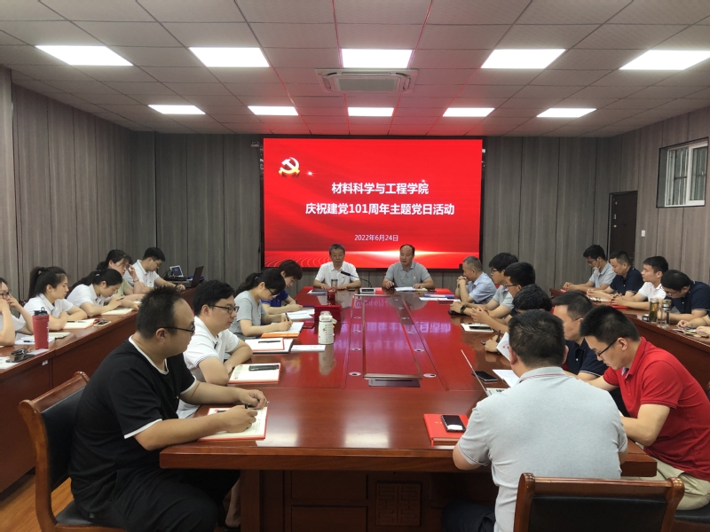 为庆祝建党101周年和迎接党的二十大胜利召开,进一步激发党组织活力,增强全院党员的归属感、光荣感和责任感,6月24日,材料学院开展庆祝建党101周年主题党日活动。学院全体教师党员参加,活动由党委副书记方玖胜主持。