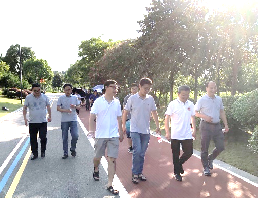 当天下午五点,在学院领导的带领下,材料学院健身徒步走队员们统一着装、齐聚雕塑公园南门。随着一声“出发”号令,大家迈着矫健的步伐,沿着雕塑公园的彩虹跑道,经过“社会主义核心价值观”石碑、雕塑景点“融”、神山大道,最终返回南门。骄阳似火,却挡不住队员们的热情洋溢,大家在互相鼓励和其乐融融的氛围下完成了全程5.4公里的健身徒步走,充分展示了材料学院教职工热爱生活、乐观向上的良好精神风貌。