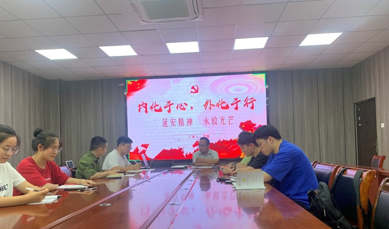 学生党员王鑫分享延安暑期社会实践的体会。他说,作为一名大学生党员,很幸运有机会申报并参加在延安的暑期社会实践,现场深刻领悟延安精神实质内涵,自己会将延安精神融入到学习、生活的方方面面,从中汲取精神滋养、涵养初心使命、铸造忠诚担当。