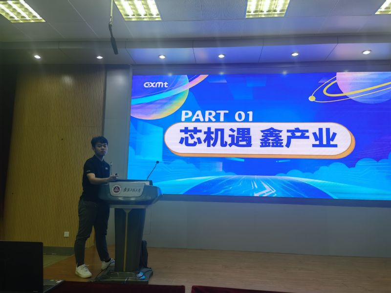 招聘会上,长鑫存储人事部经理程昕伟从公司简介、招聘专业背景、招聘职位、晋升路径、薪酬福利以及简历投递流程等方面,为应届毕业生们做了详细的介绍。