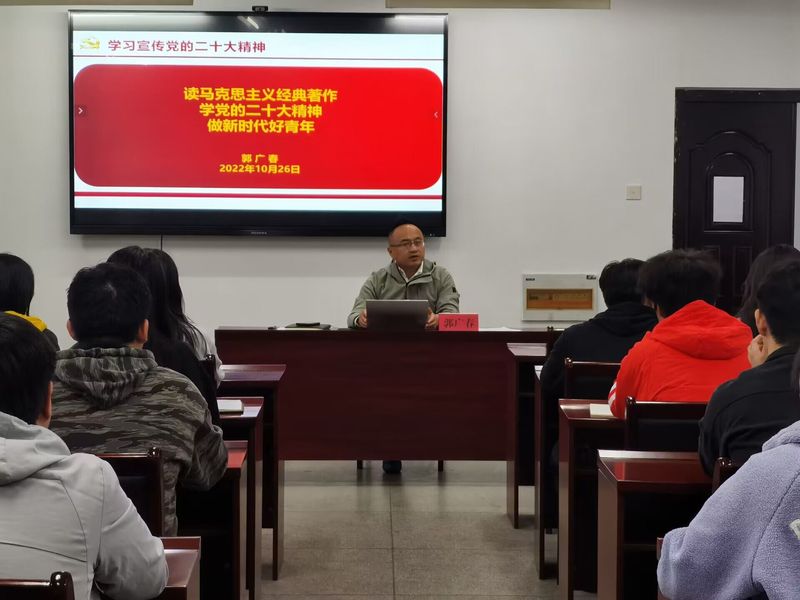 开班式结束后,郭广春为全体学员作题为《读马克思主义经典著作学党的二十大精神做新时代好青年》的开班首场党课,围绕“马克思主义经典著作是什么、怎么学马克思主义经典著作、为什么学马克思主义经典著作”进行讲授,以“人民情怀”“斗争精神”“调研方法”入手,鼓励学员通过学原文、读原著、悟原理,学思悟马克思主义经典著作中蕴含的真理。他结合个人学习体会,对如何学习宣传贯彻党的二十大精神进行辅导,要求学员读原文、思内涵、见行动。他结合学生工作经历和具体案例,从八个方面对争做新时代好青年提出要求、进行指导。