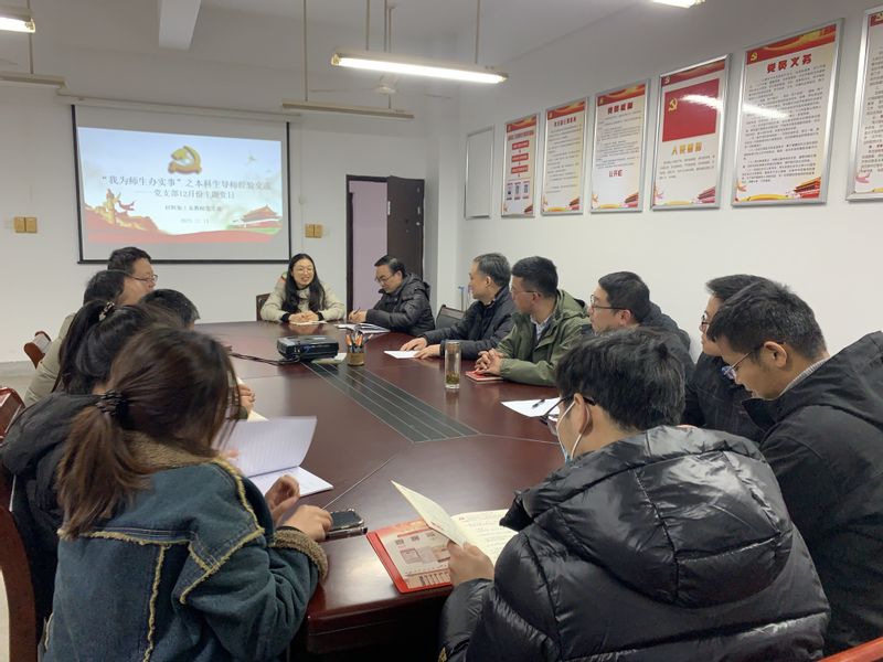 为了进一步落实学校及学院党委“三抓”工作部署、推深做实“三全六专”育人实践,12月13日下午,材料加工系教师党支部组织开展“我为师生办实事”之本科生导师经验交流主题党日活动,旨在通过党支部战斗堡垒作用的发挥,推进支部教师党员发挥先锋模范作用,助推个性化人才培养方案落实落细,强化材控专业学风建设。