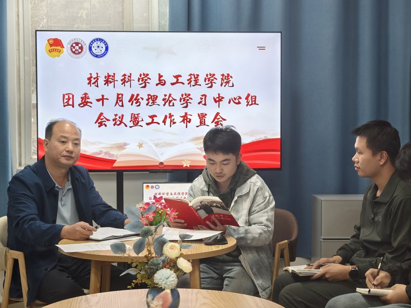为深入学习贯彻习近平总书记关于青年工作的重要思想,深刻领会《习近平与大学生朋友们》中蕴含的思想内涵和实践要求,10月10日下午,材料科学与工程学院团委在宿舍青年议事中心举行了十月份理论学习中心组会议暨工作布置会,学院党委副书记方玖胜应邀出席并讲话,院团委兼职副书记鲁力老师以及团委、学生会骨干参与本次活动,会议由院团委负责人田园主持。