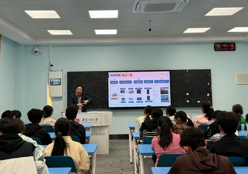 为加强新生对新能源材料专业、光伏产业的了解和认识,充分发挥校友榜样引领作用,11月7日下午,学院2001届校友、南京好助新能源有限公司董事长王晶受邀为24级新能源材料与器件专业学生作题为《新能源——中国光伏历程》报告。学院党委副书记方玖胜、副院长刘琪参加,报告会由新能源材料系主任陈洁仪主持。