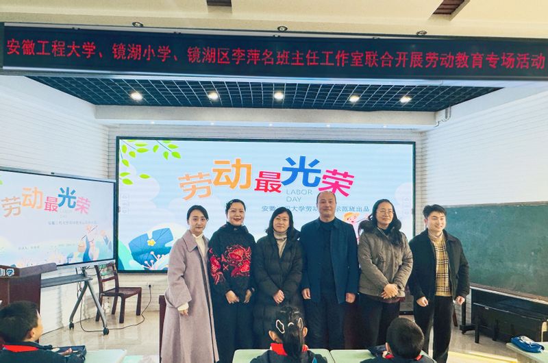 为深入贯彻习近平总书记关于教育的重要论述,全面贯彻党的教育方针,落实《中共中央 国务院关于全面加强新时代大中小学劳动教育的意见》,加快构建德智体美劳全面培养的教育体系,探索大中小一体化劳动教育实践,深化我校“三全六专”育人实践,12月12日,材料科学与工程学院党委副书记方玖胜、劳动教育先锋示范班班主任鲁力带领我校劳动教育先锋示范班赴芜湖市镜湖小学开展宣讲活动。镜湖小学校长赵玲会见学校一行,副校长李晓清、党支部副书记张学梅、名班主任李萍等参加活动。