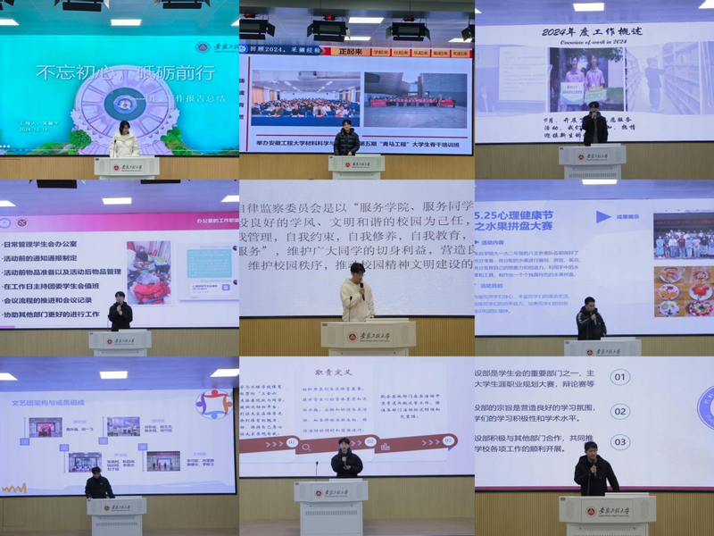 主席团成员结合所分管工作依次进行汇报,针对不足之处进行原因分析,明确提出下一步工作思路。各部门负责人围绕“全心全意为同学服务”的宗旨,依次汇报本学期工作开展情况,总结工作的亮点与不足,并简要介绍下学期的工作打算。