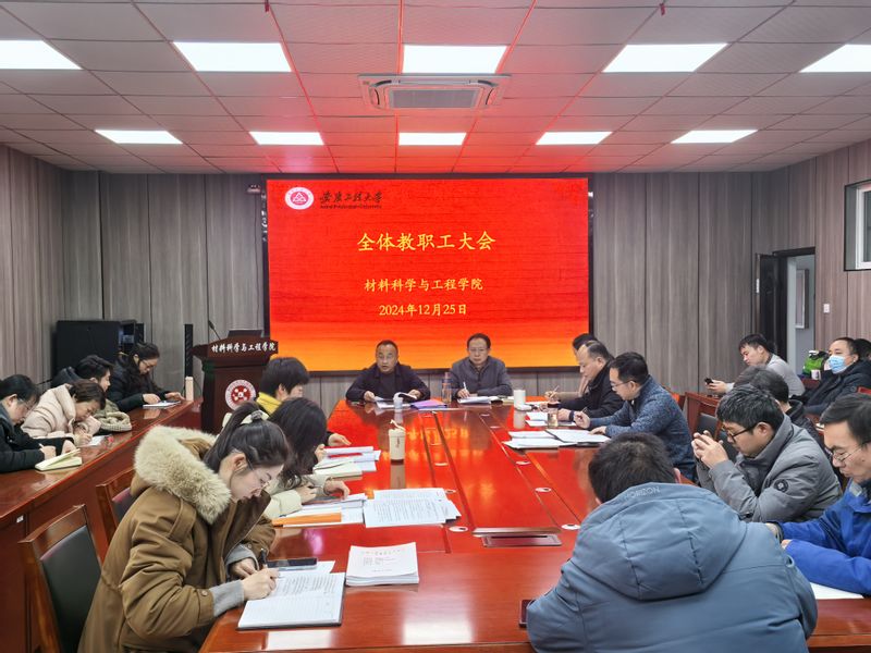 12月25日,材料科学与工程学院在B216召开全体教职工大会,学习近期重点文件精神,部署年终工作安排。