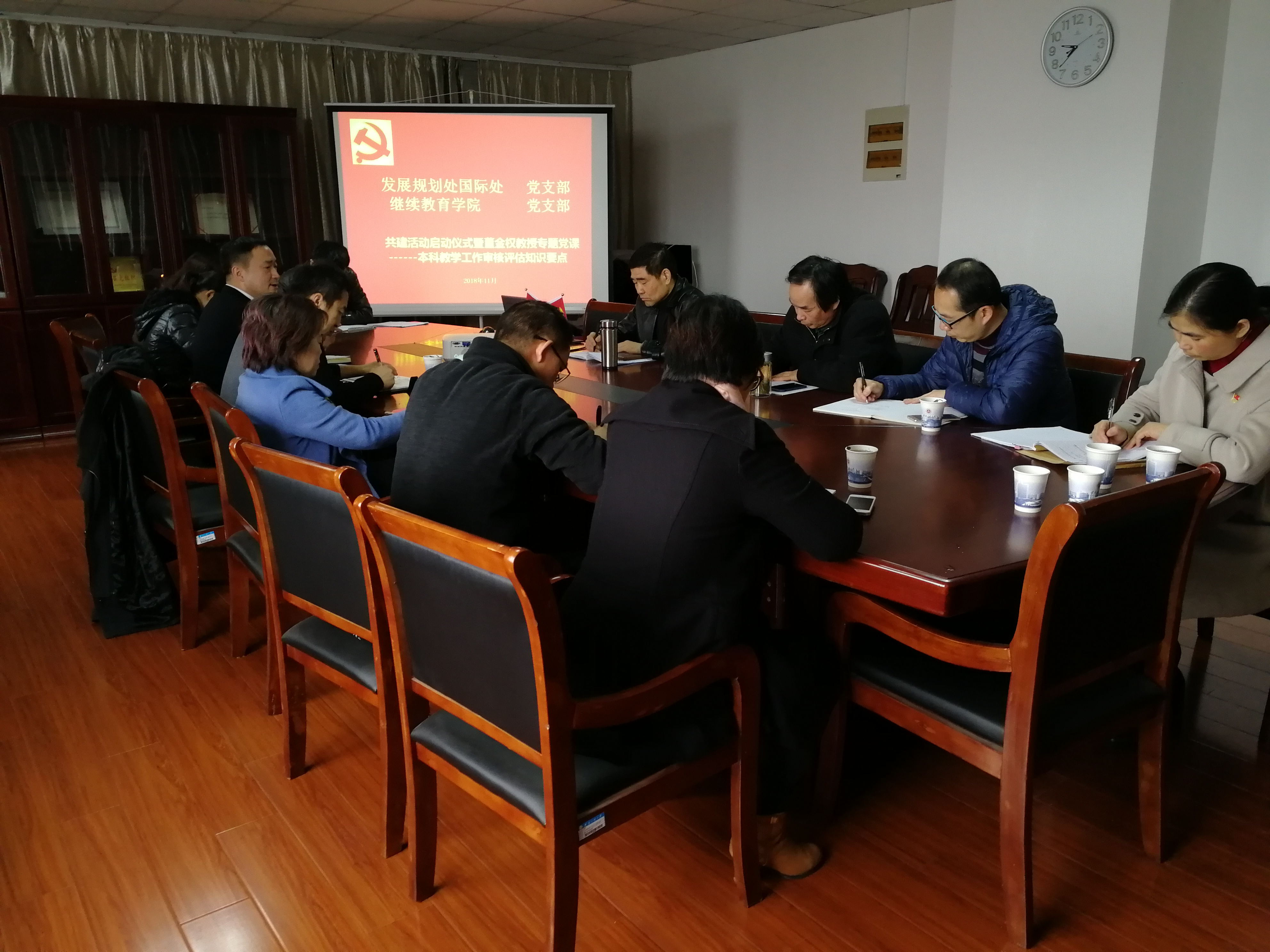 为加强党支部建设,增进学习交流,丰富党建活动,拓展党建工作思路,充分发挥党建工作对发展工作的促进作用,11月21日,发展规划处国际处党支部与继续教育学院党支部举行共建仪式,开展交流共建活动,邀请学校本科教学工作评估办公室董金权教授做本科教学工作评估专题党课。