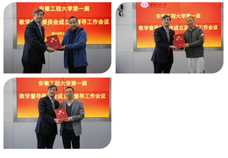 王绍武为校第一届教学督导委员会督导员一一颁发聘书并作了讲话。他肯定了各位督导员在落实立德树人根本任务、稳定教学秩序、提升人才培养质量等方面做出的贡献,代表学校感谢各位督导员对学校人才培养工作的支持。他强调,督导工作要从督教、督学、督管、督改、督建等五个方面开展。