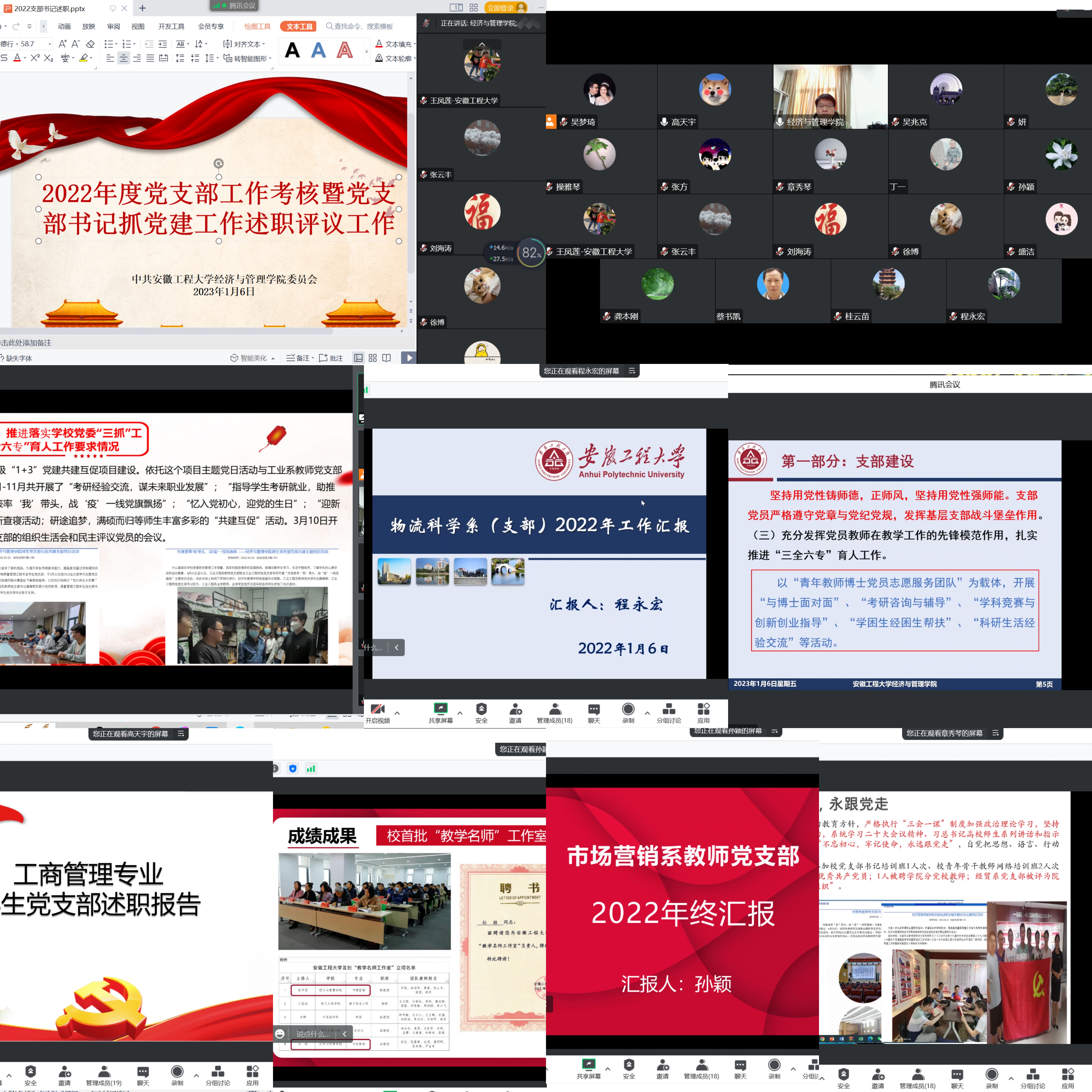 2023年1月6日,经济与管理学院党委组织开展2022年度党支部工作考核暨党支部书记抓党建工作述职评议工作。学院全体党委委员、纪委委员、党支部书记参加会议,会议由学院党委书记水心宝主持。