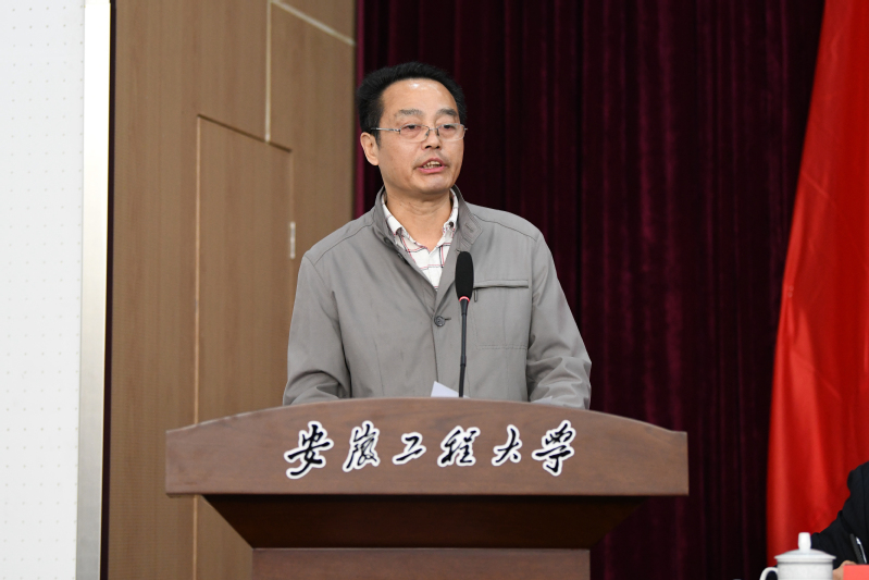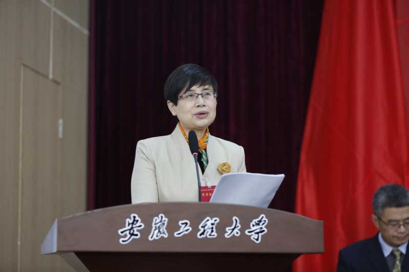 凤桦致辞。他代表安徽省教科文卫体工会向大会的召开表示热烈的祝贺,高度肯定了我校自上一届两代会以来取得的成就,指出学校在通过学校行政与工会联席会议落实解决问题、开展“师德创新工作室”建设等工作走在全省高校的前列。就如何做好学校教代会工会工作他强调要深入学习宣传贯彻习近平新时代中国特色社会主义思想和党的十九大精神,增强工会工作的政治性、先进性、群众性;牢记教育工会职责使命,切实履行维护的基本职责,全心全意依靠教职工办学,着力推动学校事业科学发展;各级工会组织要认真贯彻《中共中央关于加强和改进党的群团工作的意见》,自觉接受党的领导、团结服务广大教职工、依法依章程创造性开展工作,充分发挥党联系教职工群众的桥梁纽带作用。他希望学校进一步加强教代会、工会建设,不断完善民主管理和民主监督机制,促进民主管理和民主决策的水平再上新台阶。他要求全体代表认真履行职能,完成大会任务,祝愿大会取得圆满成功。