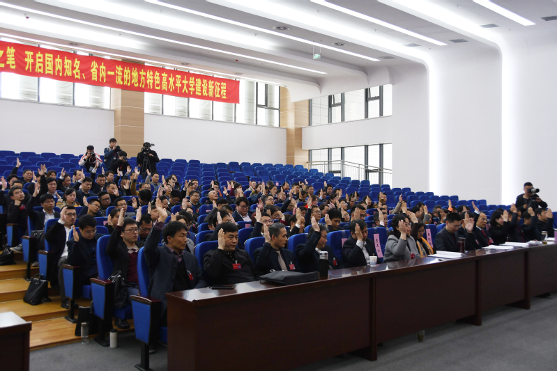 工会主席王河受第一届教代会执委会和工会委员会委托,向大会作题为《凝聚改革共识 汇聚发展力量 团结动员广大教职工奋力开创地方特色高水平大学建设新局面》的报告。发展规划处处长曹安照作《关于