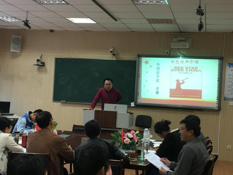 来自大英二部教师党支部的徐鹏向大家推荐了埃德加·斯诺撰写的《红星照耀中国》,分享了他暑假前往延安旅游的所见所闻,带大家从延安精神中汲取“初心”的力量。