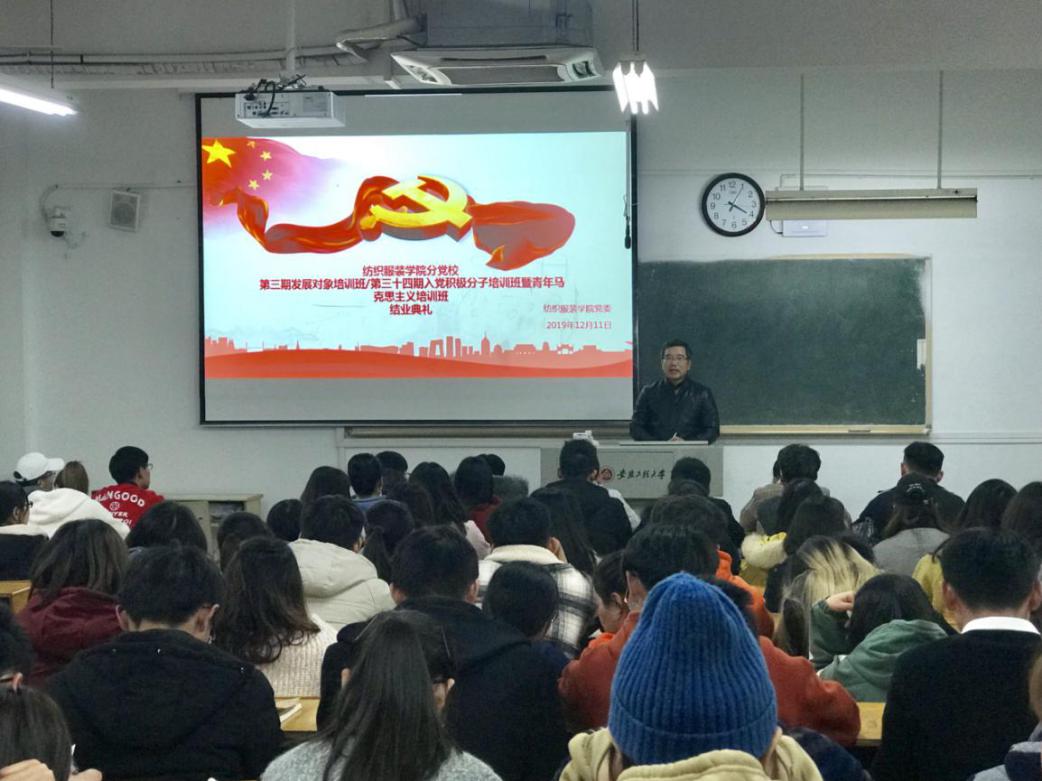 本网讯12月11日下午,纺织服装学院于四教211教室举行分党校第三期发展对象培训班、第三十四期入党积极分子培训班及院第三期“青年马克思主义工程”大学生骨干培训班结业典礼。学院党委副书记、分党校副校长孙宏义参加了结业典礼。