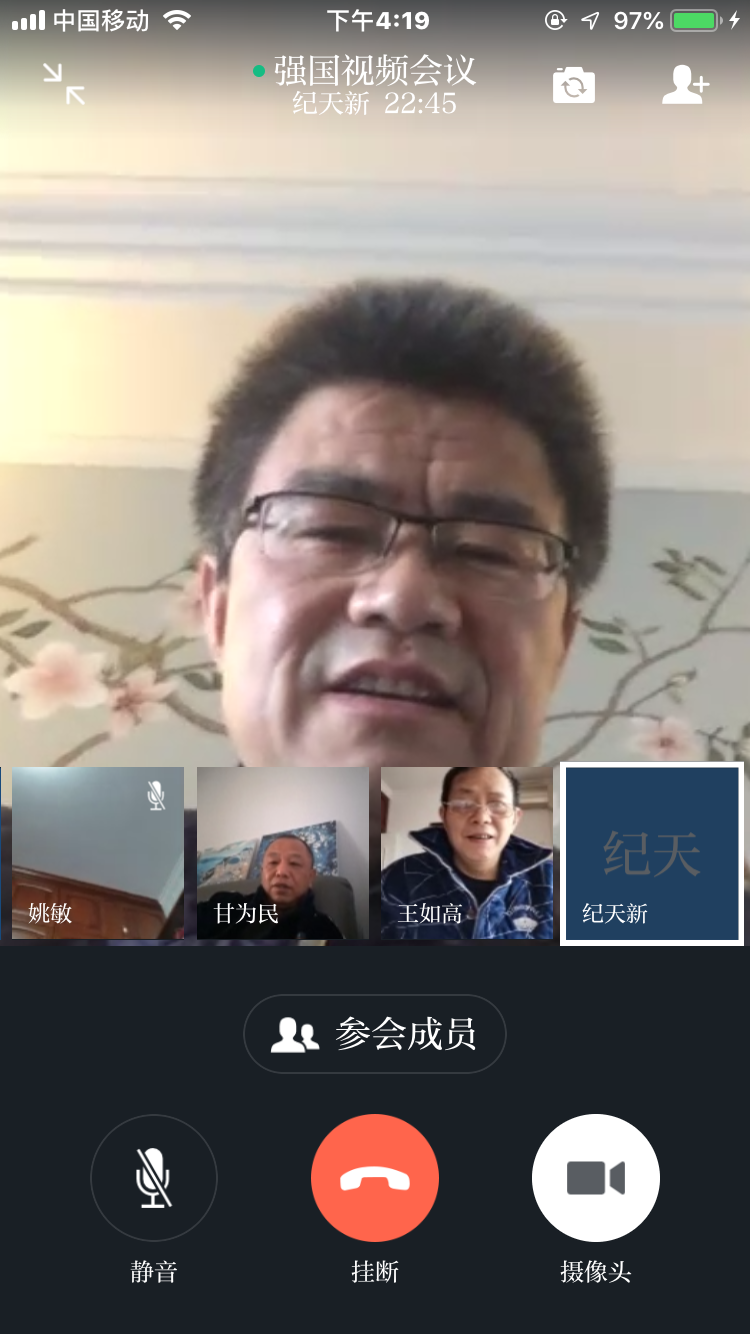 总支书记纪天新对一支部的开会学习方式予以了充分肯定。他说,在当前的疫情防控形势下,视频学习既避免了人群聚集,又有效保证了组织生活的正常进行,是当前形势下党建工作途径的有效尝试。