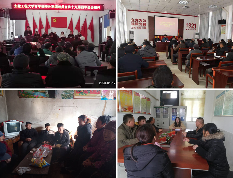 在山东省阳信县,分享团成员王明海同学寻访当地农村贫困户和低保户,向他们宣讲党和国家各项民生政策,分享个人学习党的十九届四中全会精神的体会,号召大家共同为决胜全面建成小康社会努力奋斗;王子航在巢湖市基层社区,围绕“十三个显著优势”,与基层党员干部和群众一起分享自己的学习体会,宣讲党的十九届四中全会主要内容;彭云龙宣讲后体会颇深,他说:“通过给基层村党支部做宣讲分享备课的机会,找到了自己一直以来忽略的知识点,假期在家中不断查缺补漏、加强学习,为我今后的宣讲分享进一步夯实基础”。巢湖市半汤街道鼓山村村委会主任钱继云给我校学生点赞:“安工程学生来宣讲,用最贴近生活的例子和故事,不仅让老百姓了解党的十九届四中全会精神,还明白了中国特色社会主义制度的真正优势和自信所在。”