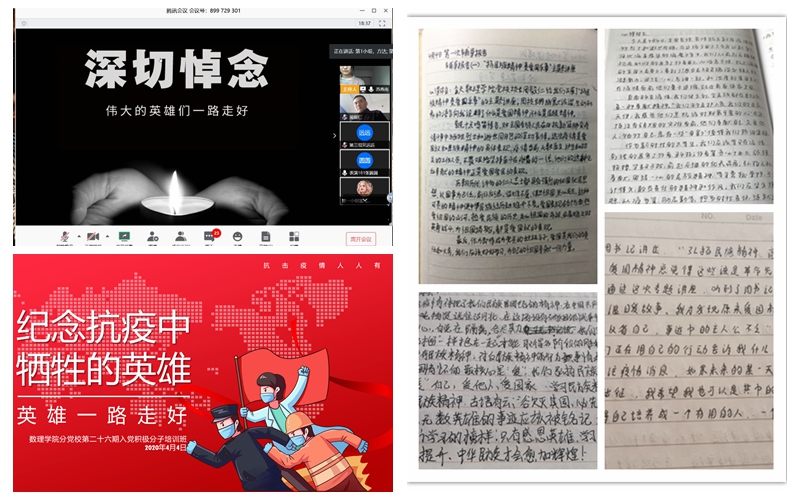 本网讯4月4日,数理学院分党校入党积极分子培训班和预备党员培训班共计127名学员一起在腾讯会议网络平台上了一堂特别的爱国课。上午10时,随着警报声鸣响,分布各地的全体成员一起起立默哀3分钟,向因抗击新冠肺炎疫情斗争牺牲的烈士和逝世同胞表达内心最深切的哀悼。