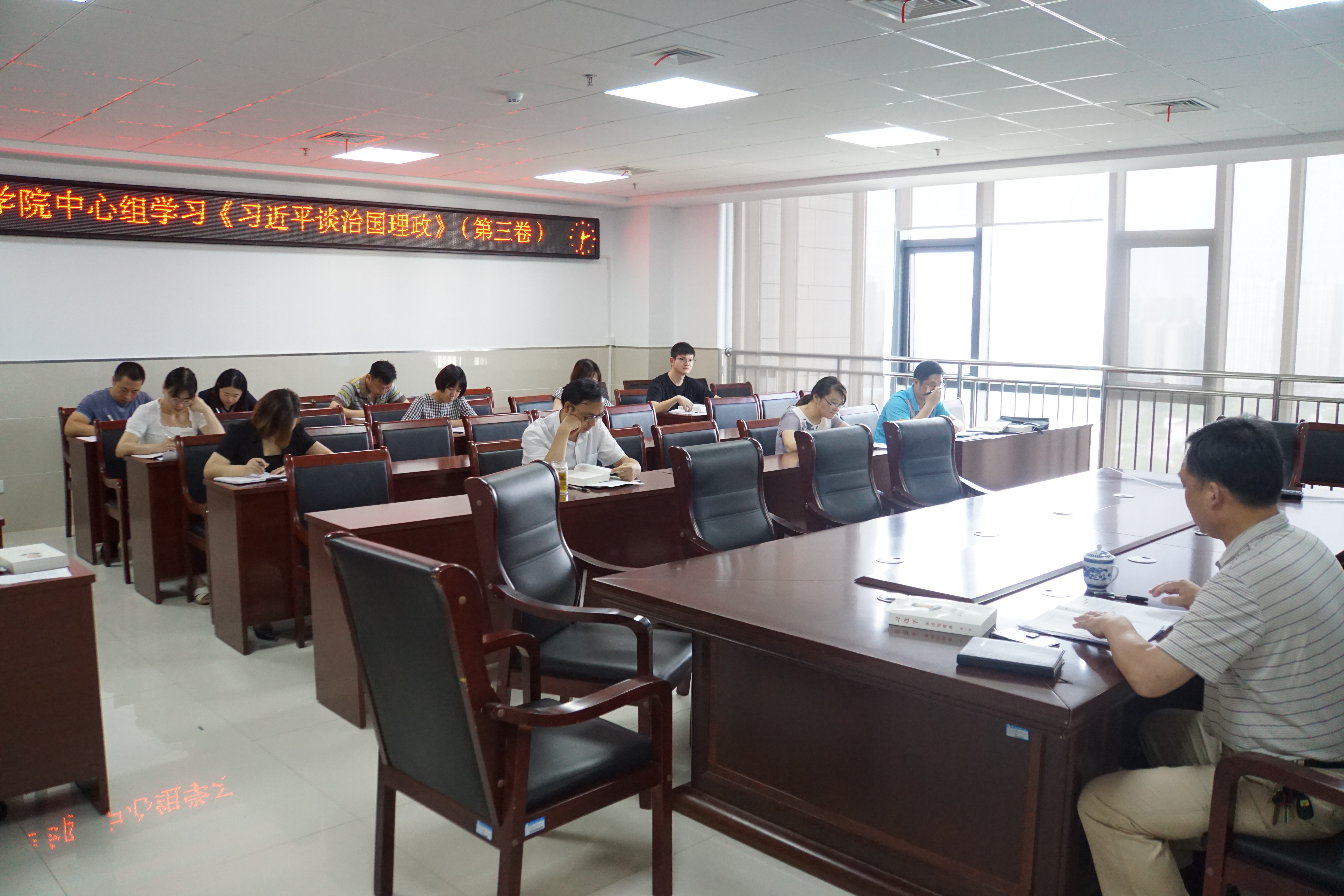 本网讯8月27日,人文学院党委中心组在新图1307会议室开展《习近平谈治国理政》第三卷学习会,学院党委委员、办公室主任、组织员、党支部书记、辅导员等共同参加。学院党委书记邓英扣主持学习会。