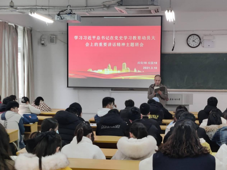 本网讯习近平总书记在党史学习教育动员大会上的重要讲话,为我们开展好党史学习教育指明了方向、提供了遵循,自开展党史学习教育以来,化环学院积极开展各项学习活动,把党史学习落到实处。化环学院辅导员相继召开了以学习习近平总书记在党史学习教育动员大会上的重要讲话精神为主题的班会。
