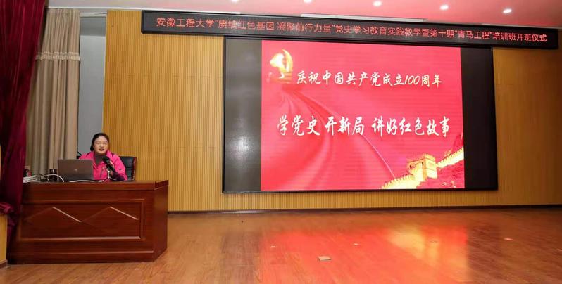苏国红代表学校党委对宣城市委、泾县县委以及新四军军部旧址纪念馆的重视和安排表示感谢。她说,新四军精神是中国共产党精神谱系的重要组成部分,泾县是“传承红色基因 弘扬新四军精神”党史学习教育的重要基地,我校党员干部、师生员工经常来到这里缅怀革命先烈、接受党性教育、开展爱国主义教育。她指出,在中国共产党成立100周年,全党上下开展党史学习教育之际,学校党委在泾县这片红色的热土上建立党史学习教育基地,组织“青马工程”培训班学员开展“赓续红色基因 凝聚前行力量”党史学习教育实践教学,追寻红色足迹,接受党史教育,具有非常重要的意义。她要求,“青马工程”培训班学员认真学习红色历史,不断汲取精神营养,补足“精神之钙”,点亮“信仰之灯”,熔铸“信念之魂”,在实践中锤炼、成长、进步,做到“学党史、强信念、跟党走”,切实发挥“点亮一盏灯、照亮一大片”的典型示范作用,以优异成绩庆祝建党100周年。