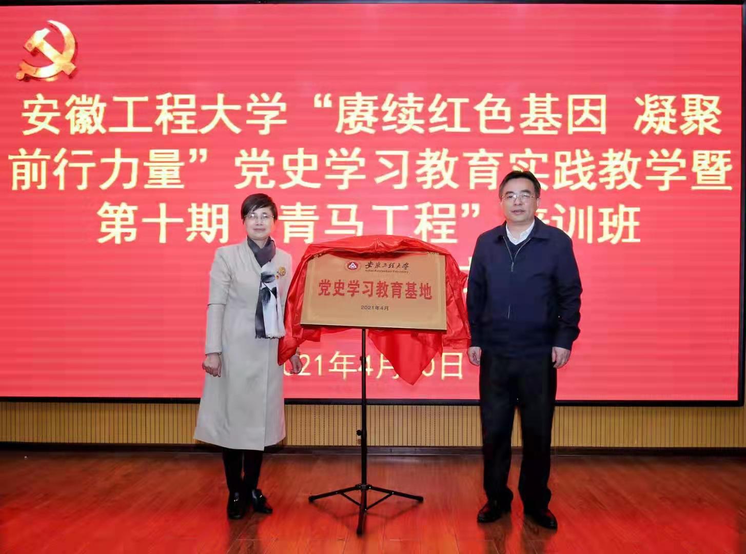 本网讯4月10日,我校在泾县新四军军部旧址纪念馆报告厅举行党史学习教育基地揭牌暨第十期“青马工程”大学生骨干培训班开班仪式。校党委副书记苏国红,宣城市委常委、组织部长朱立军,泾县县委副书记钱会出席,校院两级专兼职团干、第十期青马班全体学员参加仪式。仪式由泾县县委组织部部长朱伟主持。