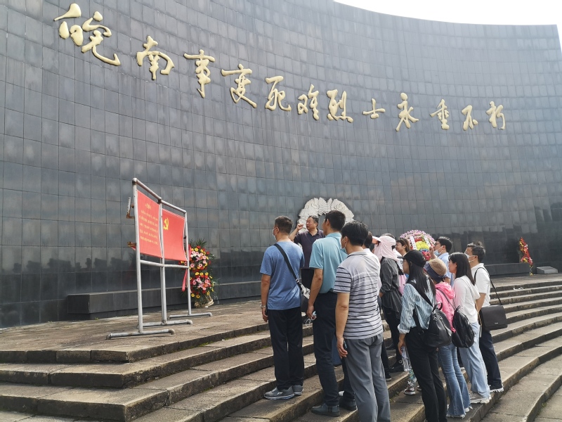 早上7:30分,两个党支部一行十五人,驱车来到泾县皖南事变烈士陵园,全体党员在庄严的哀乐声中,参观墓碑,表达崇敬之情;学院正处级组织员邬海量带领大家重温入党誓词;大家参观了中共中央东南局旧址、新四军军部旧址。在新四军军部大礼堂,大家认真学习了微党课《记周恩来在云岭的二十个日夜》。通过一桩桩震撼心灵的故事、一件件斑驳的文物和一幅幅珍贵的照片,大家再一次重温了“皖南事变”那一页悲壮的历史,切实感悟英雄先烈磅礴的精神力量,共同追忆老一辈革命者艰苦卓绝的战斗情景,深刻缅怀为革命事业英勇牺牲的革命先烈。
