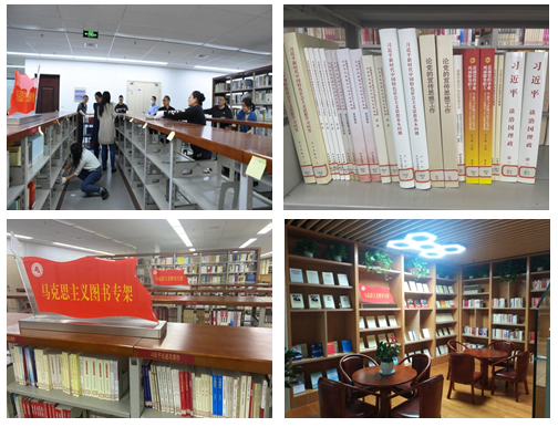 “马克思主义图书专架” 党史学习教育的红色资源重要阵地。图书馆党支部在本部和图文信息中心分别建设了“马克思主义图书专架”,共上架相关图书四千余册。专架为师生提供了大量党史学习教育的素材,为师生政治理论素养的提升提供了有力支撑,同时也能进一步引导和激励广大师生在党史学习教育中学好党史,感悟党史。