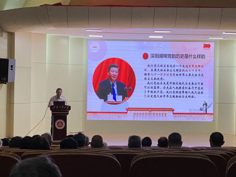 学校党史学习教育宣讲团成员马克思主义学院副教授徐东辉为大家做党史学习教育专题宣讲,徐老师从深入学习领会习近平总书记关于党的历史的重要论述,充分认识开展党史学习教育的重大意义,认真研读党史基本著作,全面了解中国共产党百年奋斗的光辉历程和历史性贡献以及深刻把握开展党史学习教育的重点三方面阐述了开展党史学习教育的必然性和重要意义。