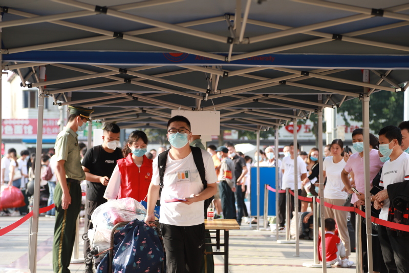 报到当日,学校领导在各个报到点、火车站、汽车站了解迎新生报到的具体情况,并向一线工作人员、志愿者表示慰问,多次强调,在本次迎新中,因疫情防控需要不准家长进入校园,而新生行李多,希望所有工作人员克服困难,为新生提供优质服务。报到现场,学校首次采用人像识别程序逐一对比,严格落实新生入学资格复查和严格规范学籍学历管理工作,优化报道程序,切实维护学生的合法权益。