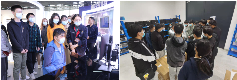 通信专业第一学生党支部和电气专业第一学生党支部赴伯泰克汽车电子(芜湖)有限公司开展支部共建活动。公司党支部书记李刚给予了热情接待。他首先对公司进行了简单的介绍,随后带领同学们们参观了公司的仓库、实验室、生产区域和办公区域,同学们对公司的工作环境、生产过程、产品特色、市场优势有了深度地了解,也加深了同学们对智能制造、智慧工厂、现代工业的组织管理有了全新的认识。