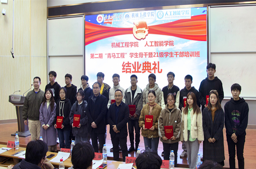 本网讯11月25日,机械工程学院(人工智能学院)第二期“青马工程”学生骨干暨2021级学生干部培训班结业典礼在2教报告厅举行。校团委书记郭广春、学院党委副书记何志恒出席结业典礼,班级辅导员和培训班学员参加。结业典礼由培训班班主任时慕天主持。
