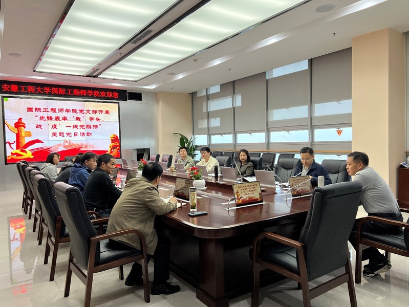 本网讯为了进一步落实疫情防控责任,从严从实抓好疫情防控工作。4月28日,国际工程师学院党支部在图文信息中心七楼无纸化会议室开展了“先锋表率‘我’带头,战‘疫’一线党旗扬”主题党日活动。安徽省政协教科卫体委员会副主任、学校原党委书记刘宁参加活动,除支部全体党员参加外,本次主题党日活动还邀请了两名入党积极分子参加。活动由支部书记魏长顺主持。