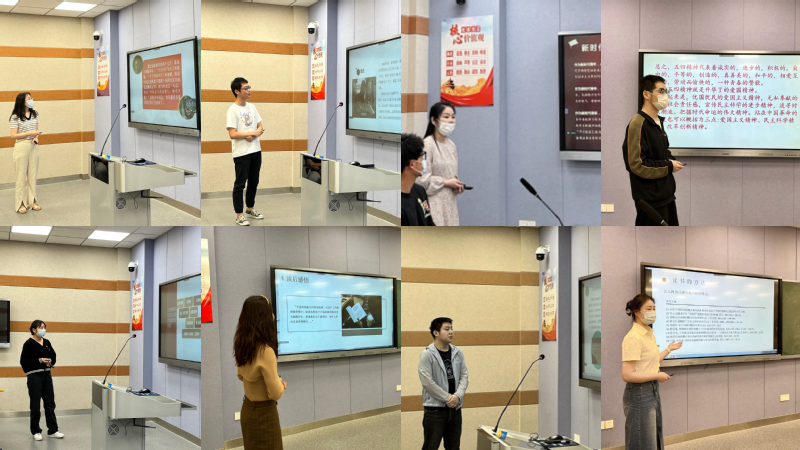 来自艺术学院2020级研究生张珠丽、电气工程学院2021级研究生胡俊、化学与环境工程学院2020级研究生孙静茹分别带领大家对《觉醒年代》中经典角色进行了剖析。数理与金融学院2020级研究生李夏着重讲述了五四精神内涵,呼吁大家要发扬爱国精神,树立远大理想,将爱国心化作报国行,唱响人生之歌;马克思主义学院2020级研究生李媛向大家讲述了建党精神;经济与管理学院2020级研究生张怀苗和艺术学院2021级研究生葛梦心分别和大家分享了自己的读书感悟。