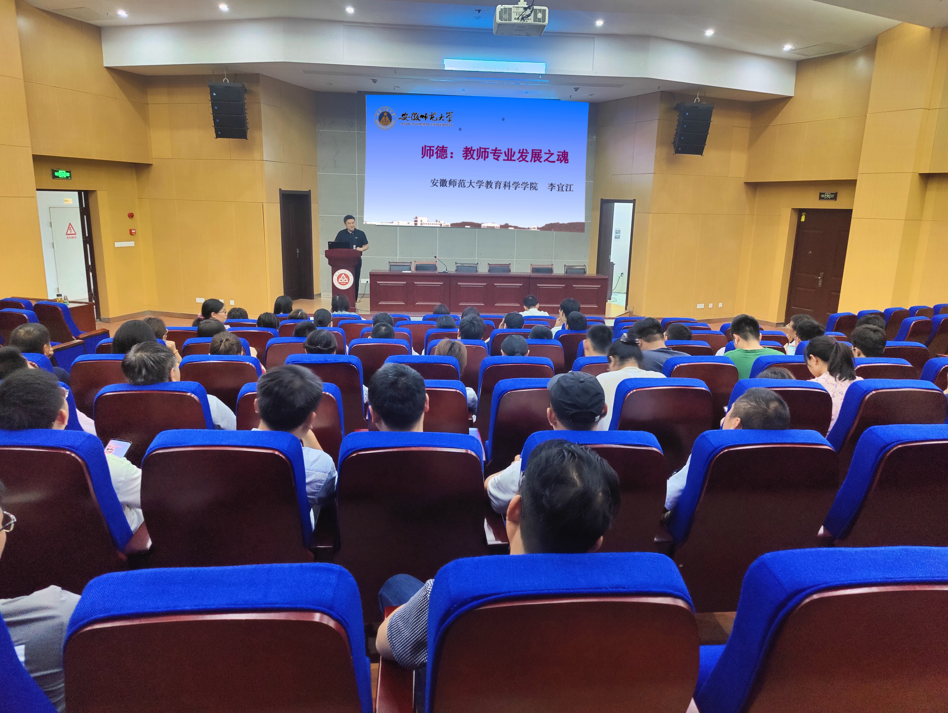 本网讯为进一步贯彻党的教育方针,推进师德师风建设深入开展。6月22日,纺织服装学院邀请到安徽师范大学教育科学学院院长李宜江教授作“仁而爱人,甘为人梯”师德师风建设主题讲座。纺织服装学院党委副书记梁雪松、副院长徐珍珍,全体教职员工近80人参加讲座。讲座由梁雪松主持。