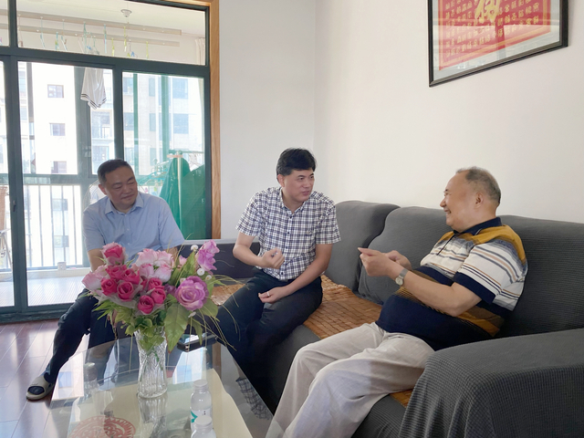 在退休干部张宝华的家中,张志宏与他促膝谈心,倾听他生活、健康、家庭情况以及对学校改革发展的建议。张志宏感谢老同志为党和学校事业所做出的贡献,并嘱托随行的相关部门负责人,要对离退休老同志倾注更多的关心关爱,为他们排忧解难,为他们安享晚年生活提供保障服务。
