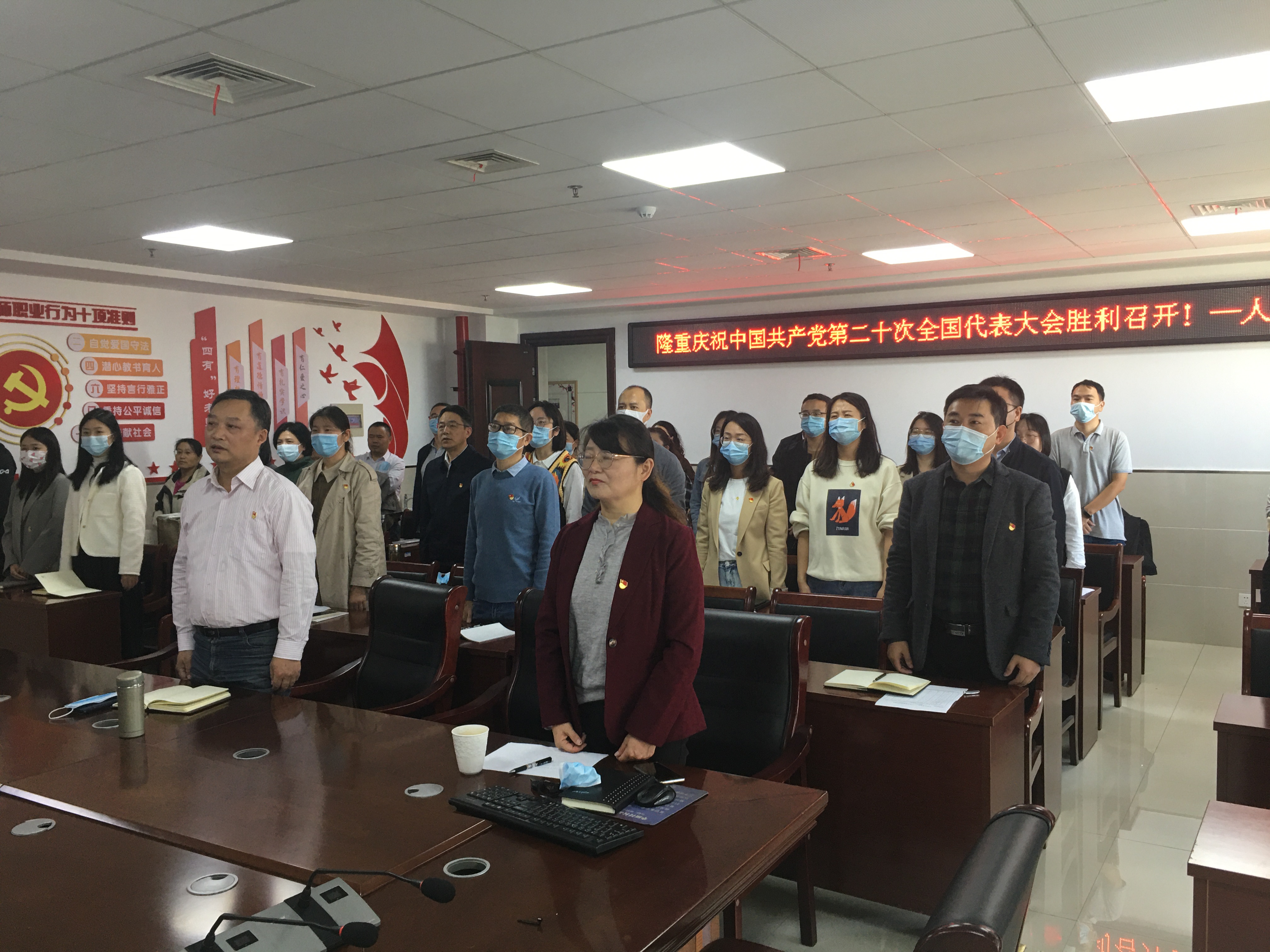 大会伊始,各会场内,伴随着雄壮的国歌,师生共同起立奏唱国歌,现场气氛隆重庄严。习近平总书记在报告中指出,中国共产党第二十次全国代表大会,是在全党全国各族人民迈上全面建设社会主义现代化国家新征程、向第二个百年奋斗目标进军的关键时刻召开的一次十分重要的大会。大会的主题是:高举中国特色社会主义伟大旗帜,全面贯彻新时代中国特色社会主义思想,弘扬伟大建党精神,自信自强、守正创新,踔厉奋发、勇毅前行,为全面建设社会主义现代化国家、全面推进中华民族伟大复兴而团结奋斗。在习近平总书记报告期间,党员师生认真观看,不时低头认真记录。