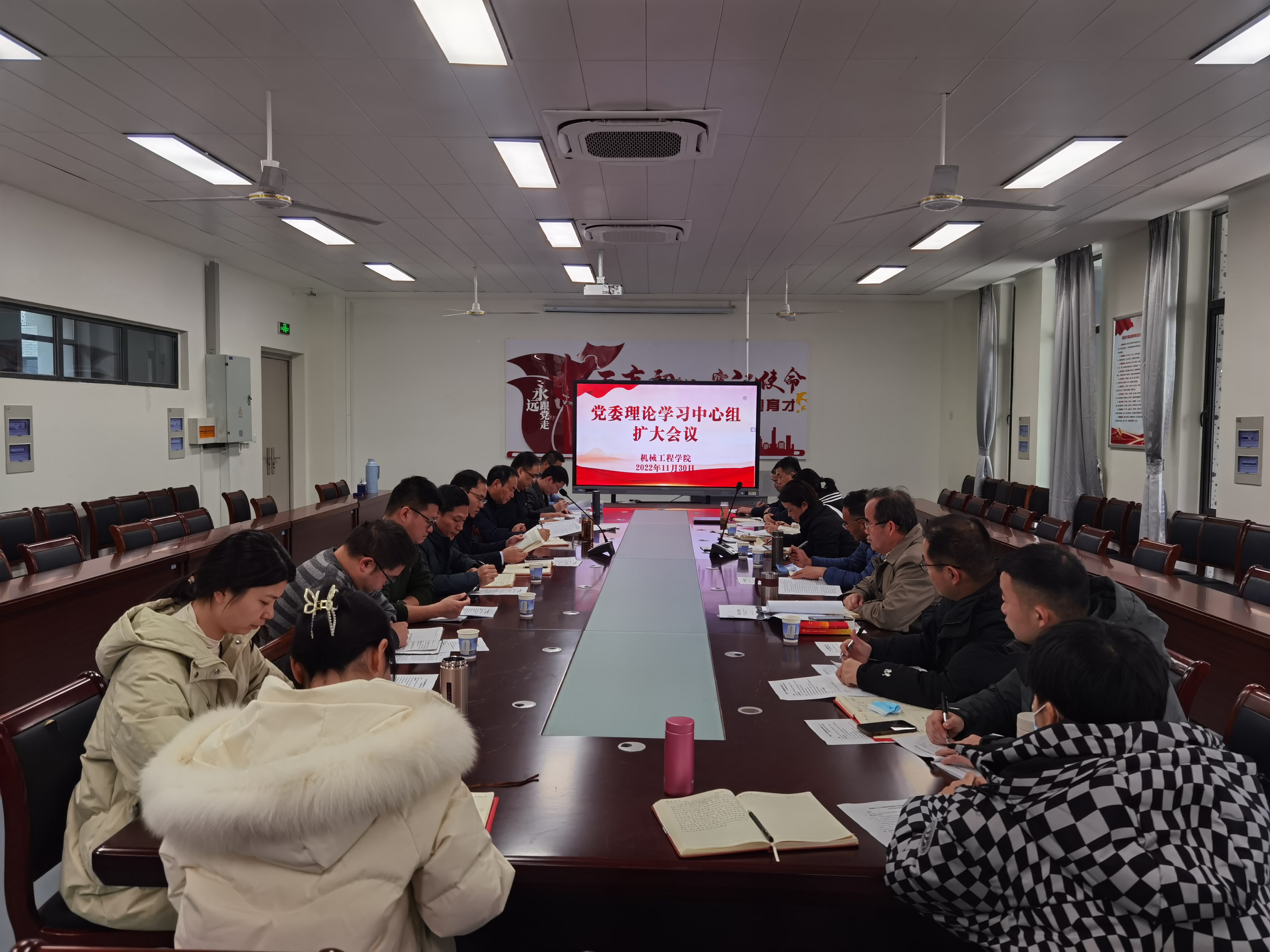 本网讯为深入学习宣传贯彻党的二十大精神,将党的二十大精神在学院党建与教育教学工作中有效落实,11月30日,机械工程学院在国际工程师学院3-1-204会议室召开党的二十大精神第二场专题学习及研讨会。学院党委理论学习中心组成员、党支部书记参加会议,二级党组织理论学习列席旁听工作组第二组成员数理与金融学院党委书记周毅仁、纺织服装学院党委副书记(主持工作)徐珍珍等列席旁听。会议由学院党委书记伊长文主持。