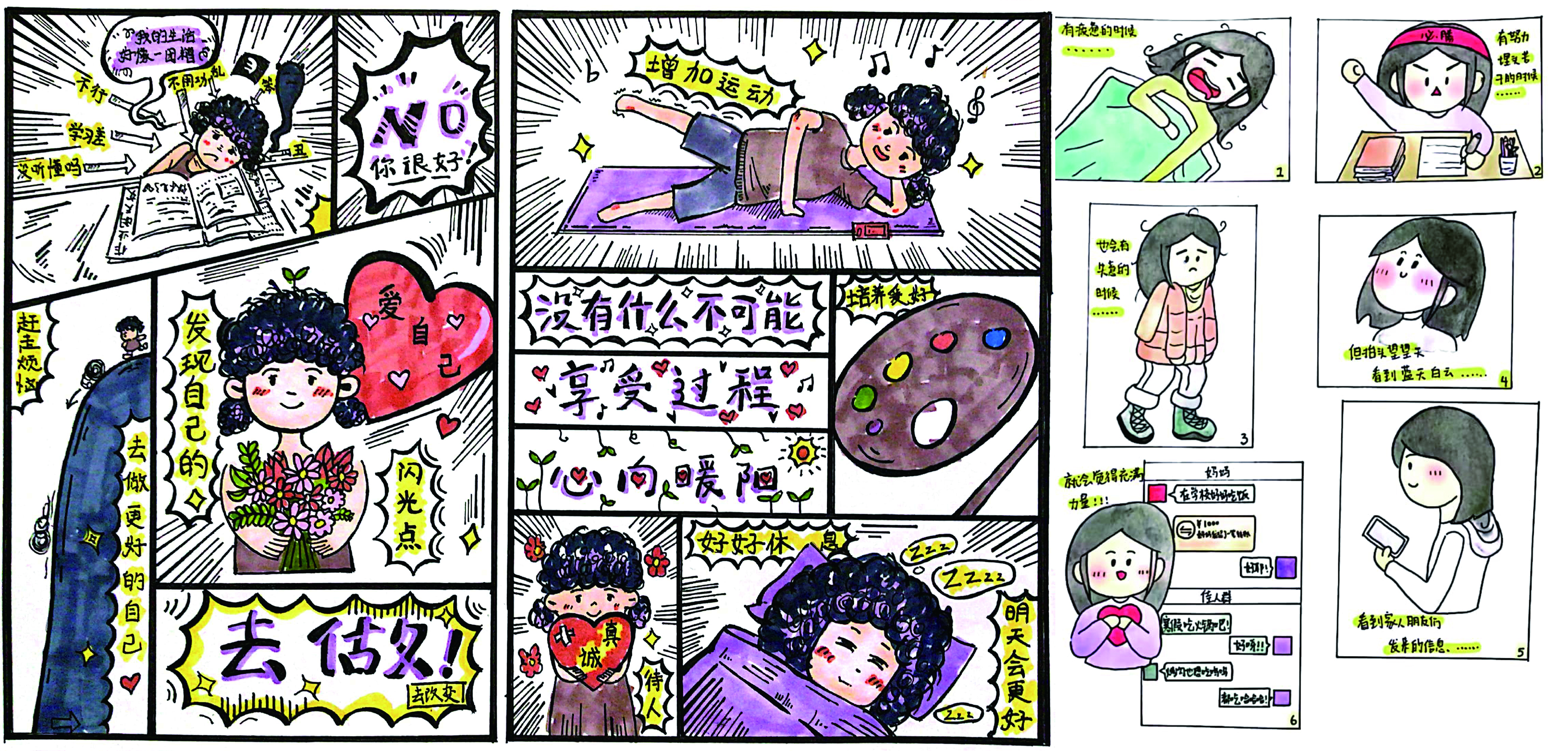 大赛历时一个月,累计收到40幅原创作品。参赛作品用艺术手法将复杂的心理活动通过漫画的形式呈现出来,学业压力、情感关系、交际恐惧、心理疾病、自我成长等内容都成为了同学们笔下贴近大学生活的主题。参赛者们用生动的笔触描绘了大学生活的心理活动、生活体验和内心感悟,传递了积极阳光的心态。