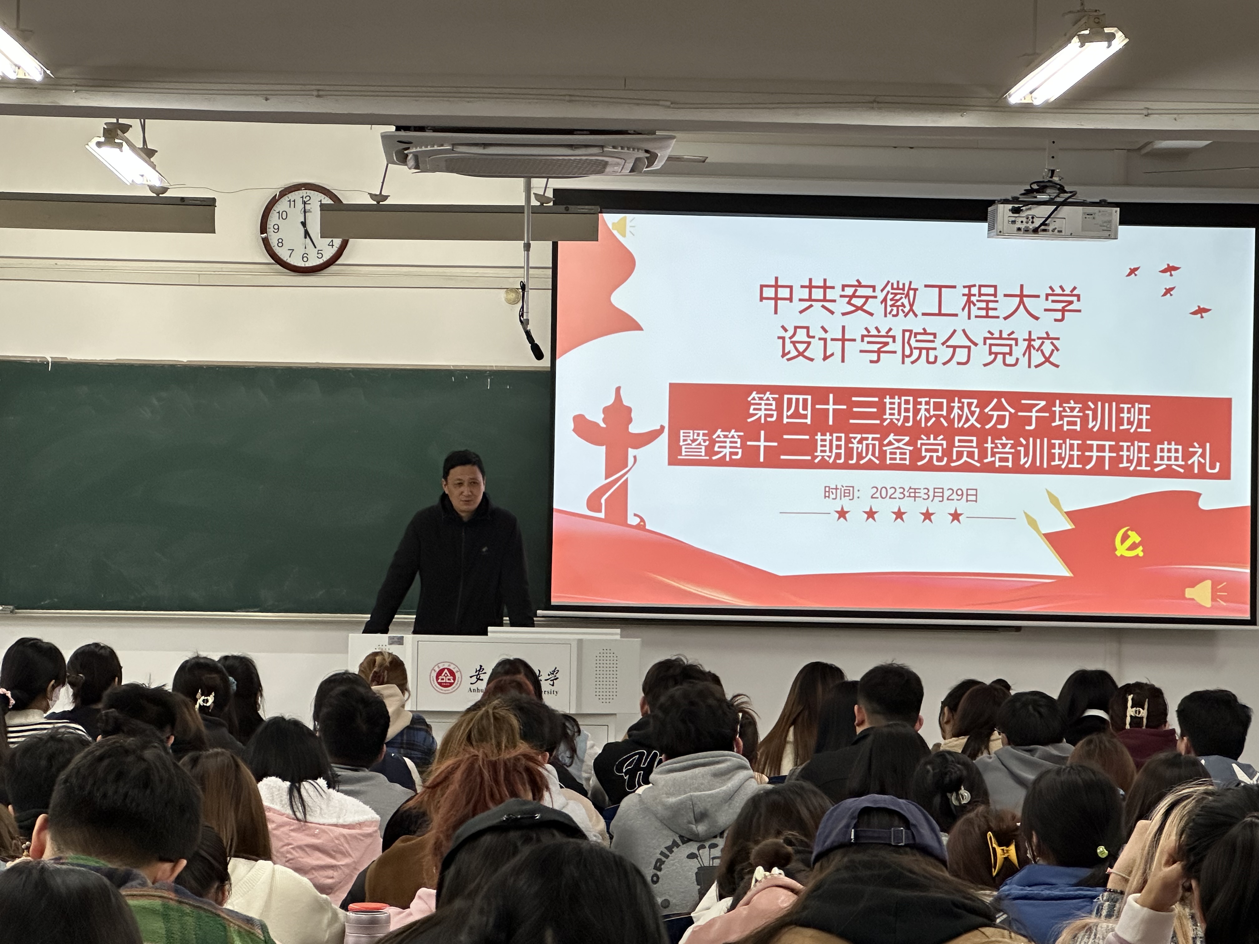 本网讯为全面学习贯彻党的二十大精神,切实做好入党积极分子和预备党员的教育与培养,3月29日,设计学院分党校于6教211举行入党积极分子、预备党员培训班开班典礼。设计学院党委书记胡家增出席,工业设计学生党支部书记李荣杰、全体学员参加。开班仪式由培训班班主任叶杨主持。