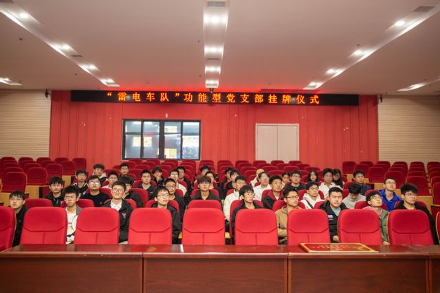 为推进汽车现代产业学院建设,深化汽车产业个性化人才培养,发挥学生党员在以赛促学中的模范带头作用,11月22日,RayBetApp官网下载 汽车现代产业学院举行“雷电车队”功能型党支部挂牌仪式。机械工程学院院长、汽车现代产业学院执行院长王建平,党委副书记秦广虎,副院长王建彬,“雷电车队”指导教师张荣芸、潘道远以及车队30余名学生代表参加仪式。仪式由辅导员孙志鹏主持。