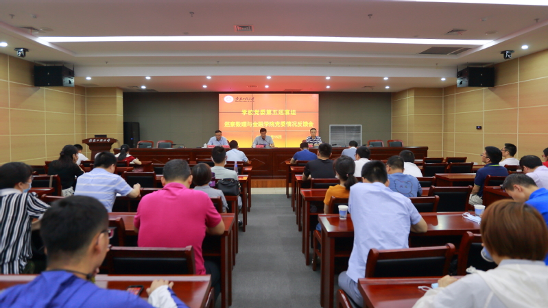 第五巡察组副组长王河及有关同志,数理与金融学院领导班子成员出席会议,党支部书记、科级干部、教授委员会委员、教代会执委,部分教师、学生代表参加了会议。