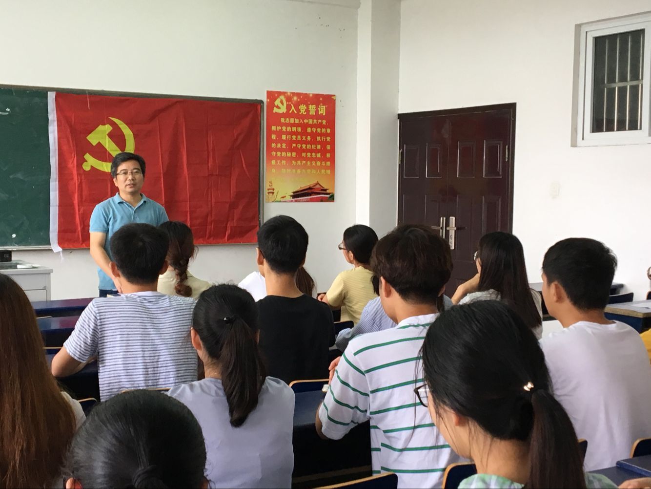 7月2日上午,纺织服装学院党委在学院多媒体教室举行预备党员宣誓仪式。学院党委副书记孙宏义、学生党支部书记、2018年新发展的预备党员参加了宣誓仪式,宣誓仪式由服装学生党支部书记陈倩主持。