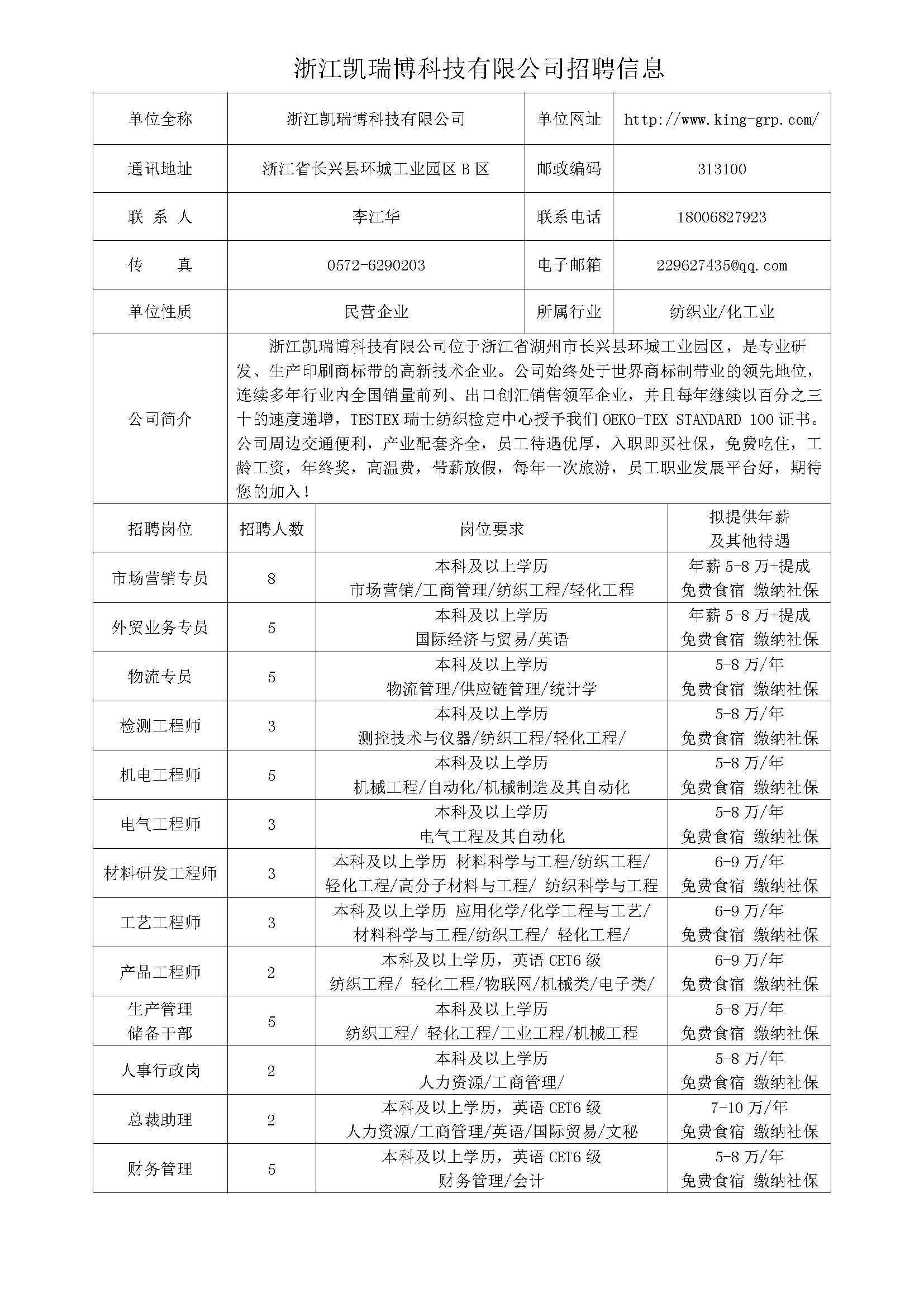 【2019届】33号 浙江凯瑞博科技有限公司(113专场)
